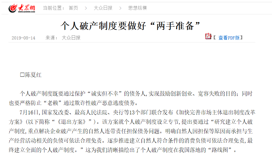 【看破】陈夏红:个人破产法与破产行政管理体系改革