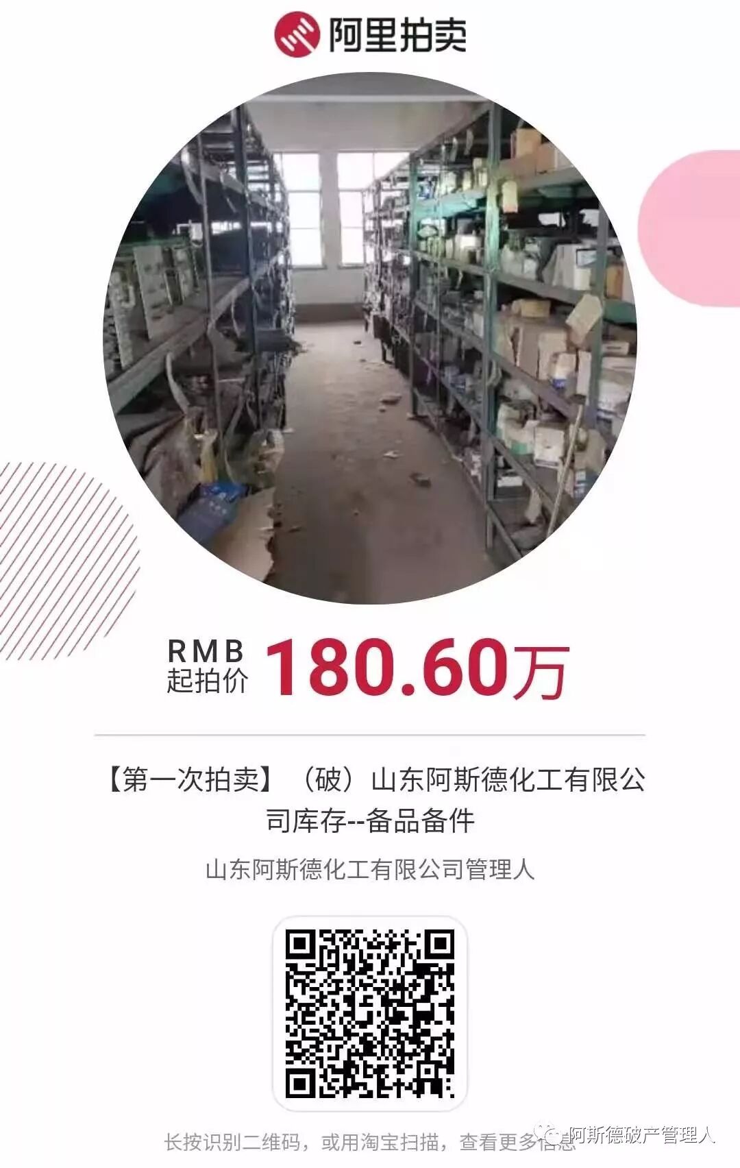 一、拍卖标的:山东阿斯德化工有限公司名下的坐落在山东省肥城市泰西大街121号的山东阿斯德化工有限公司仓库内的备品备件,包括轴承、螺母、弯头、阀门等多种配件。
