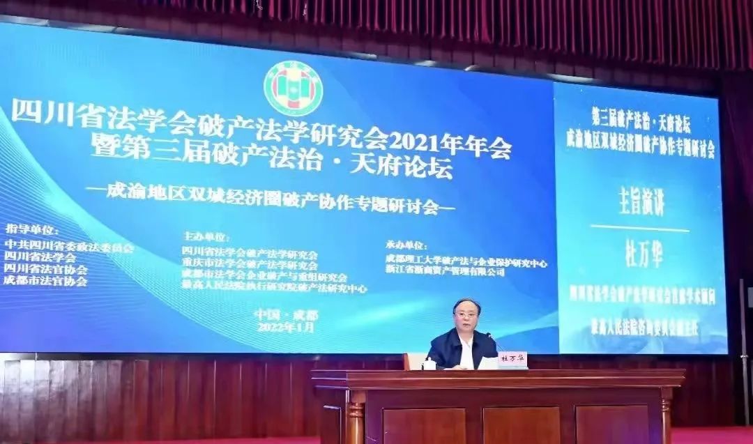按语:2022年1月9日,四川省法学会破产法学研究会2021年年会暨第三届破产法治?天府论坛——成渝地区双城经济圈破产协作专题研讨会在成都召开。最高人民法院咨询委员会副主任杜万华大法官应邀参会并作主旨演讲。感谢作者授权中国破产法论坛微信公众号推送演讲全文。