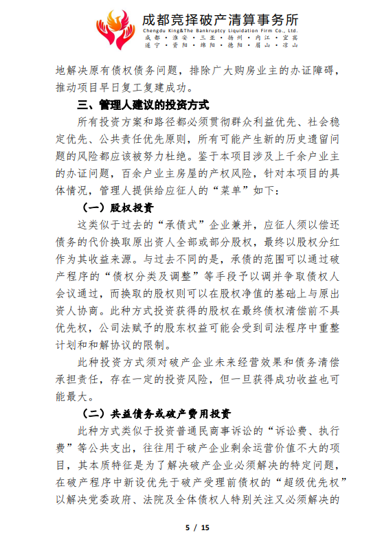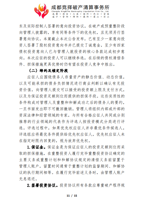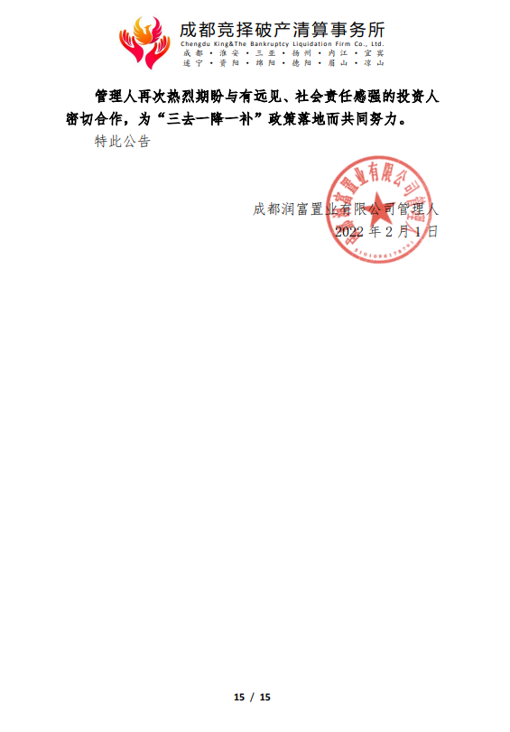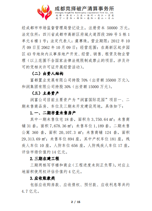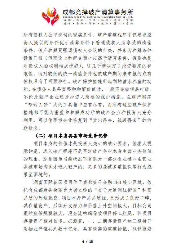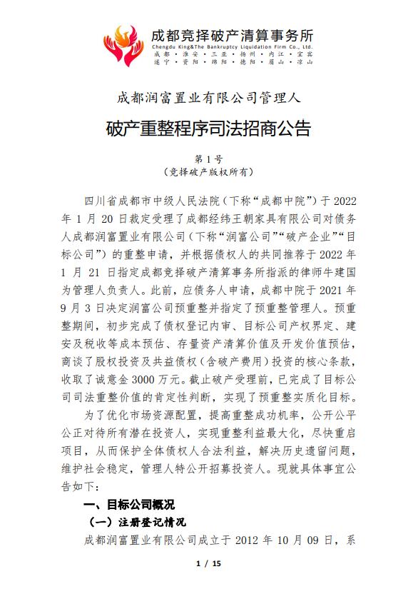 成都润富置业有限公司管理人破产重整程序司法招商公告