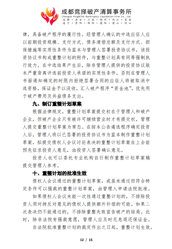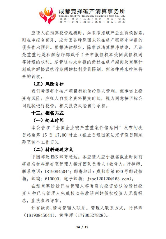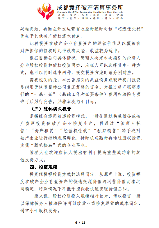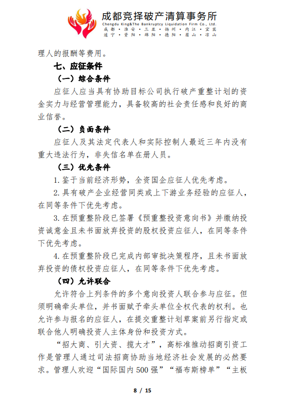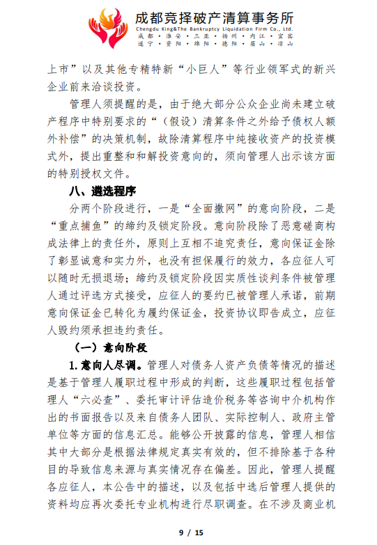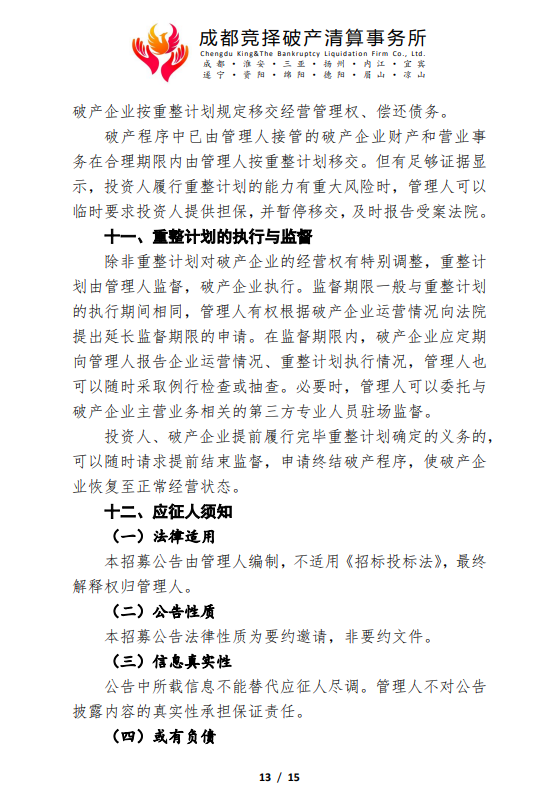 管理人破产重整程序司法招商公告