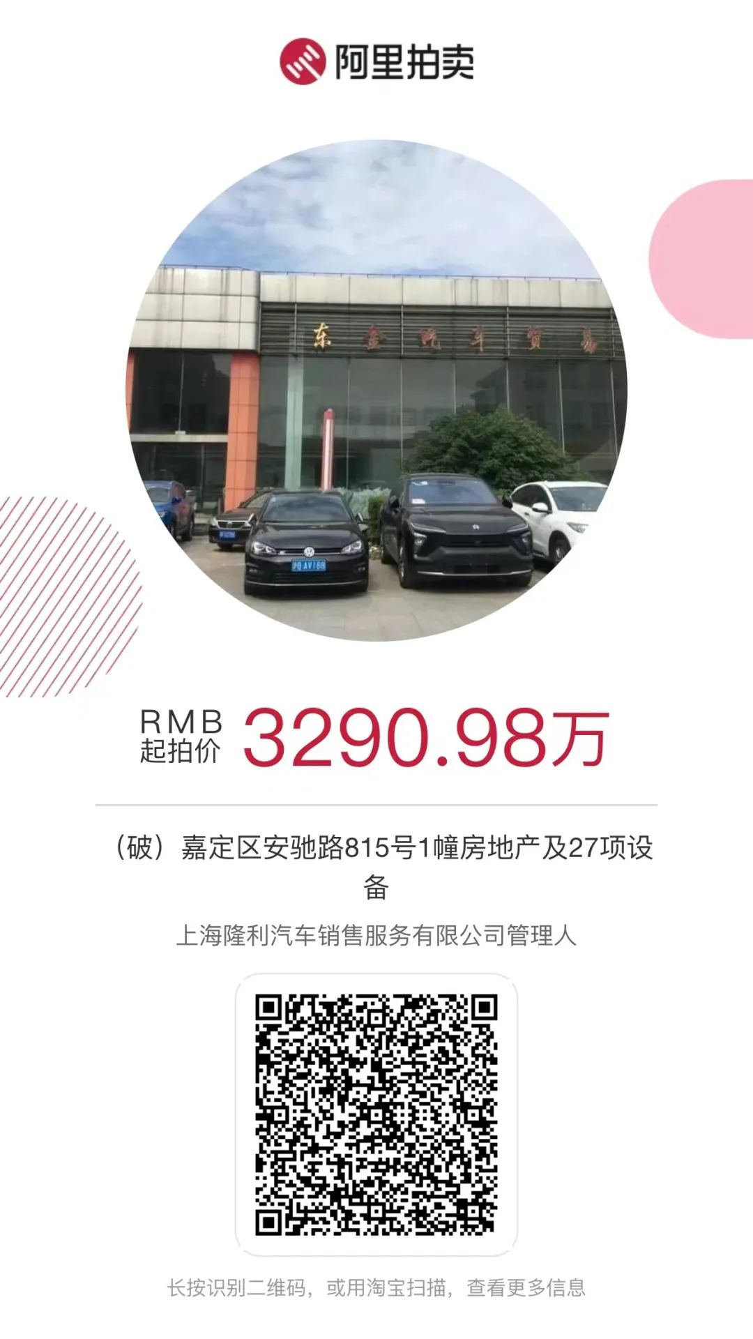 1、【二拍八折】(破)嘉定区安驰路815号1幢房地产及27项设备,3月16日开拍。