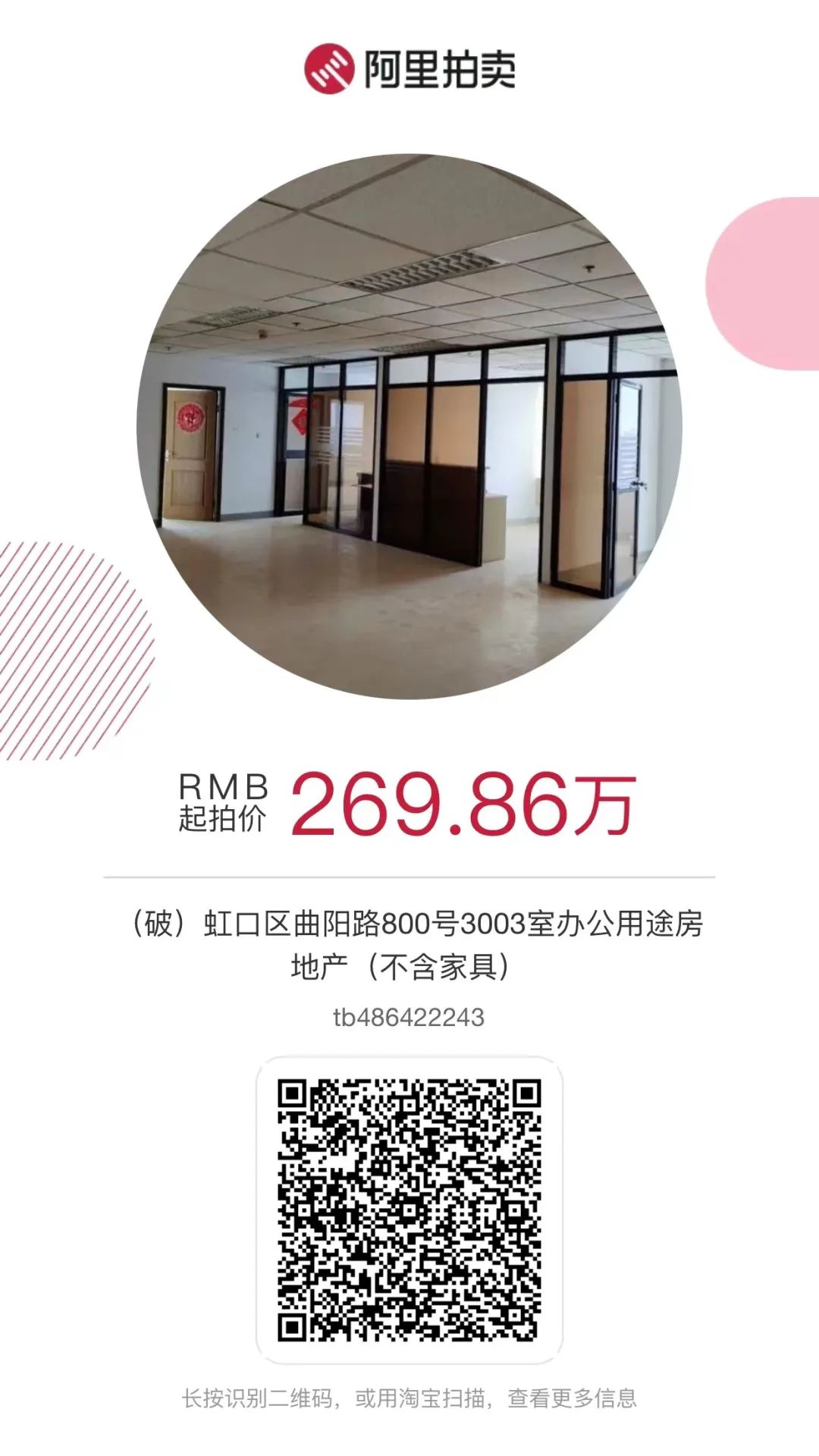 5、【二拍五六折】(破)虹口区曲阳路800号3003室办公用途房地产(不含家具),3月18日开拍。