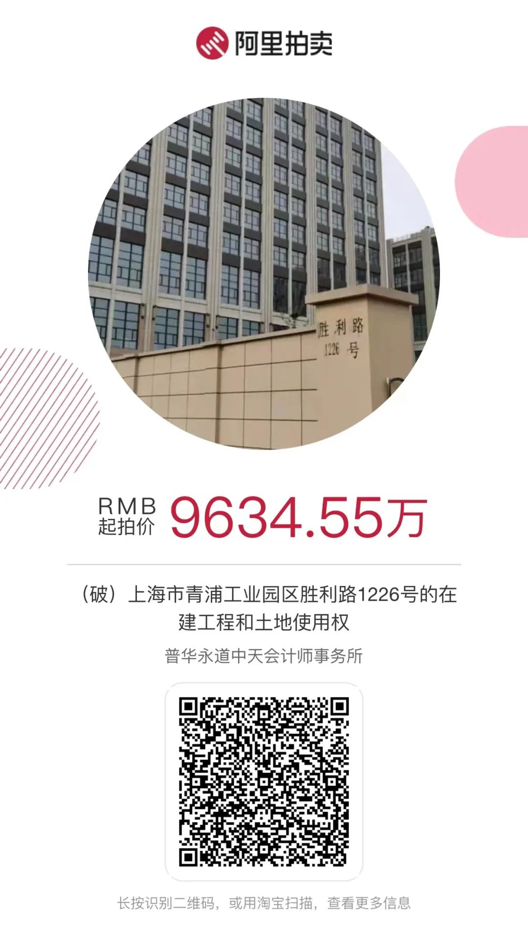 3、(破)上海市青浦工业园区胜利路1226号的在建工程和土地使用权,三拍(七二折)12月28日流拍。
