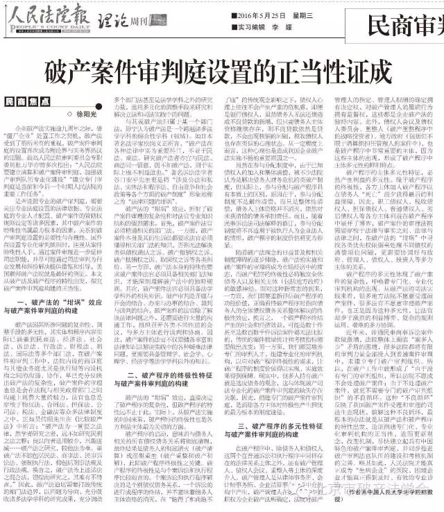 徐阳光:破产案件审判庭设置的正当性证成