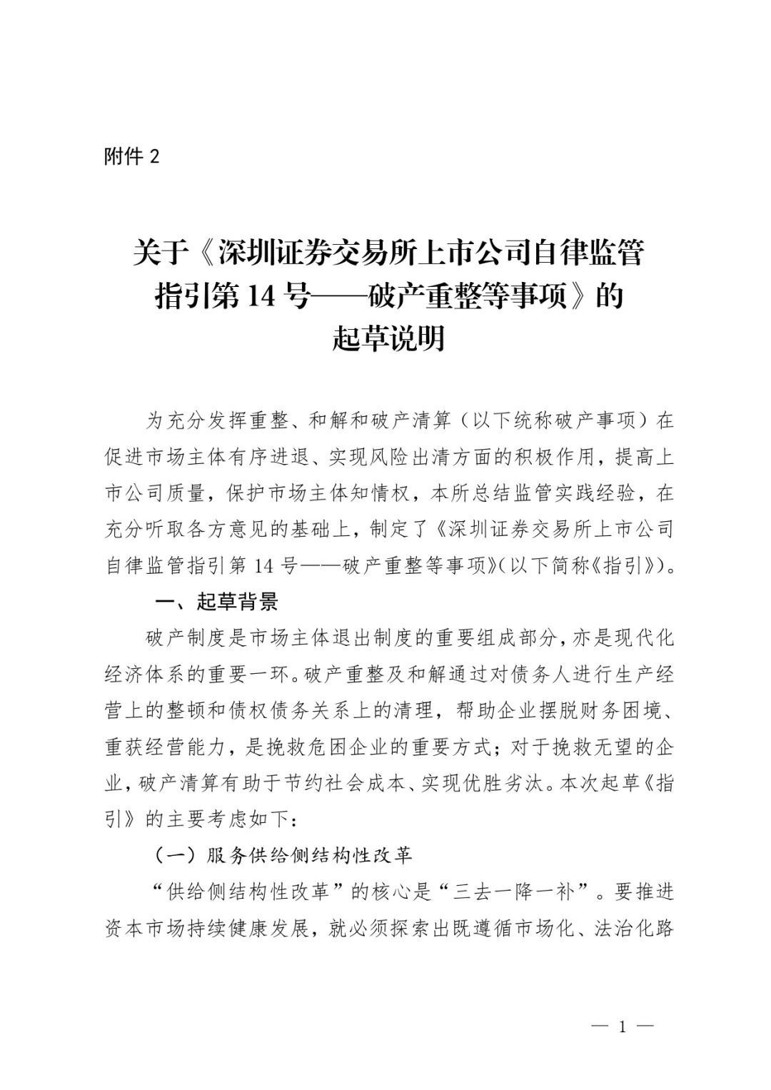 2.关于《深圳证券交易所上市公司自律监管指引第14号——破产重整等事项》的起草说明