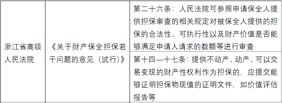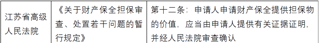 从上述规定来看,多地法院均认为担保财产价值的证明义务在于提供者一方,这也与民事诉讼程序中提出者有证明义务的基本逻辑相符。此外,由于担保财产之类型不同,被保全人需同时提交的相关证明材料亦有所差异。但应当注意的是,第三方评估意见对证明各类担保财产之价值具有共通性,且颇受法院青睐。