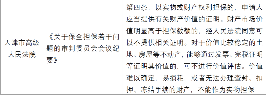 虽然上位法并未明确担保财产价值的认定规则,但各地法院自行结合司法实践所制定的裁判指引可资参考。