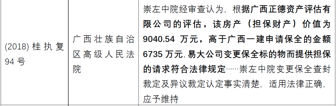 在(2018)冀执复413号案件中,被保全人华都集团公司向法院提供了由北京丰资投资担保有限公司对华都集团公司涉案的财产保全金额30006285元承担等额的连带责任保证的委托保证合同及《诉讼财产保全解除保函》,且另外提供了9套商铺作为担保。河北高院在审查后认定“鉴于北京丰资投资担保有限公司注册资本高达三亿元,且被北京市高级人民法院加入《北京市法院信用担保公司名册》并颁发《北京市高级人民法院诉讼保全试点单位资质证书》”再结合9套商铺作为担保财产,这两份担保能够满足本案财产保全目的且符合相关法律规定,因此予以支持。
