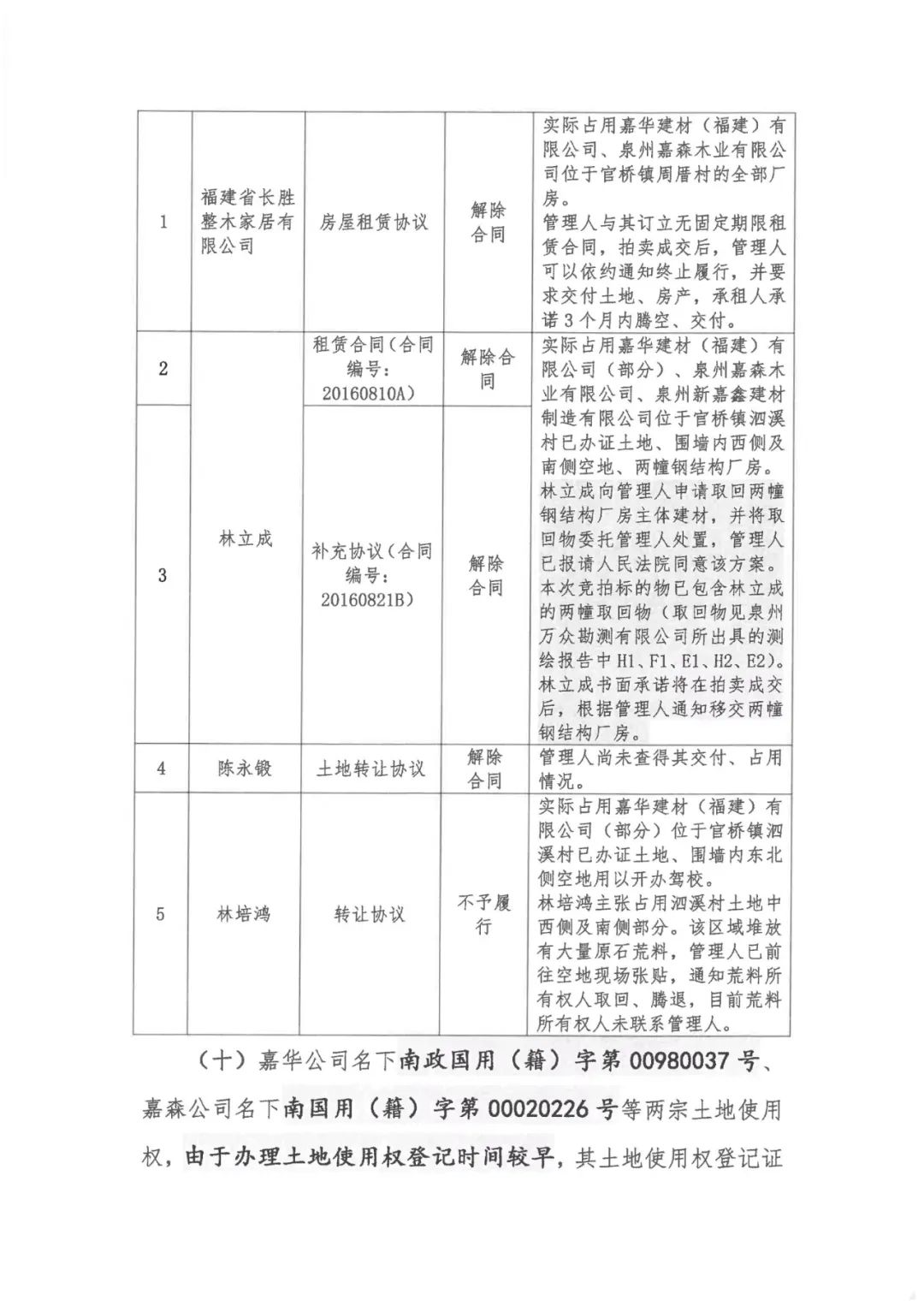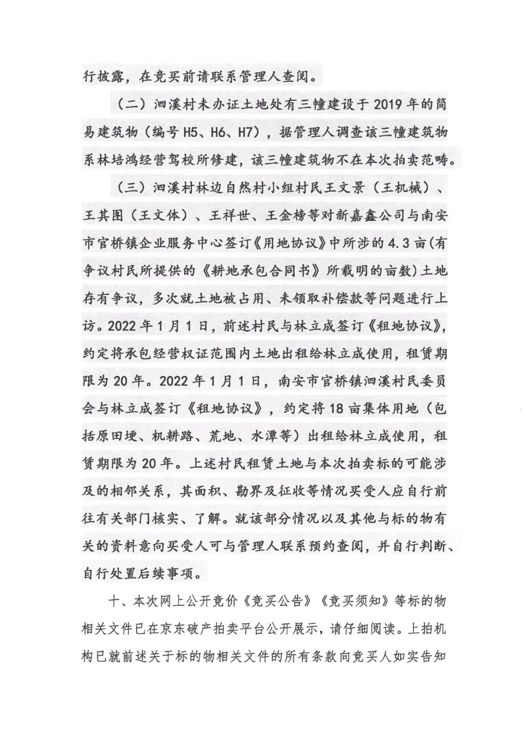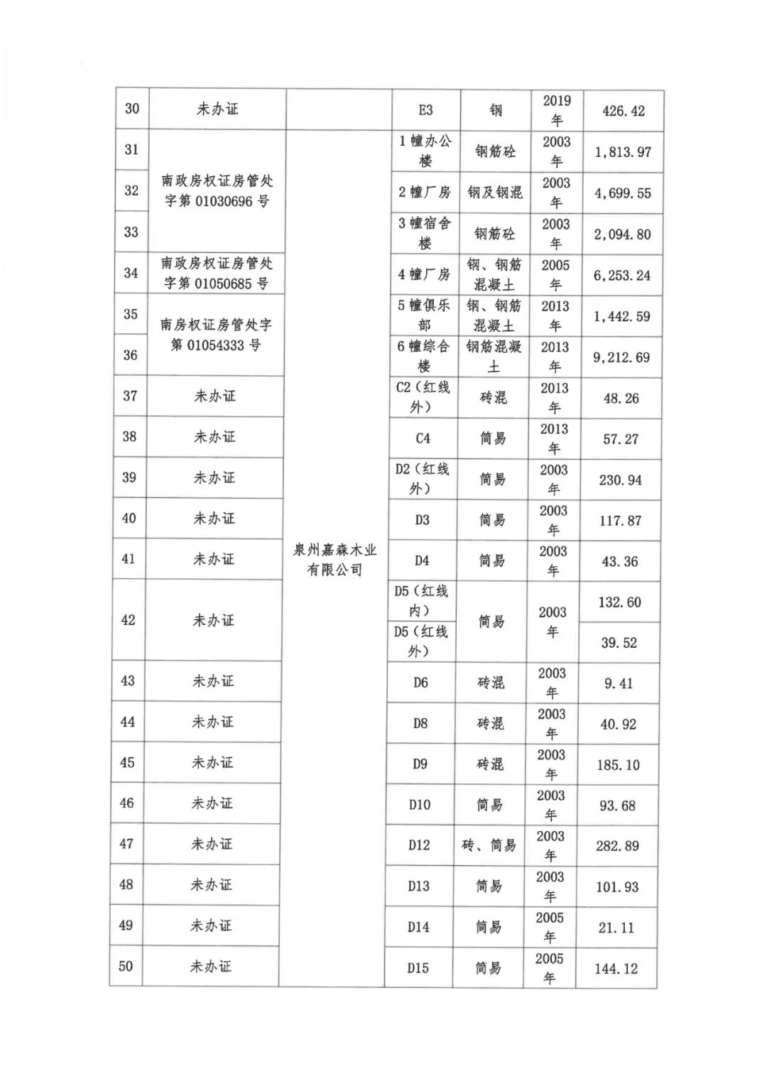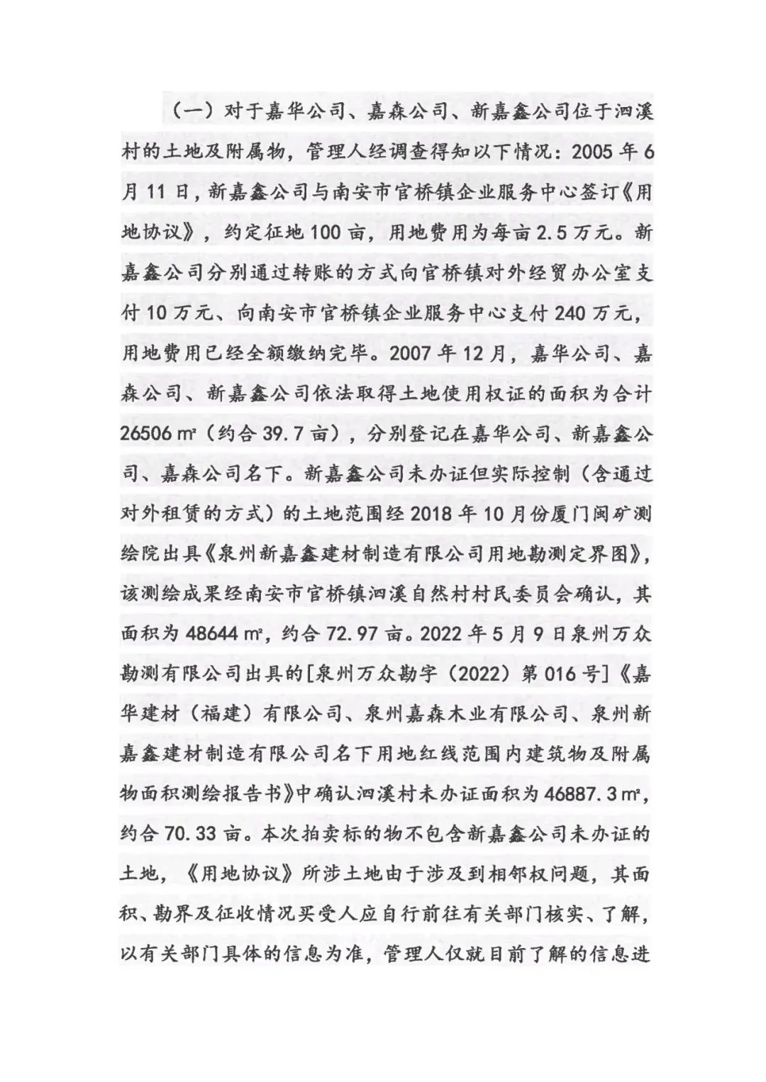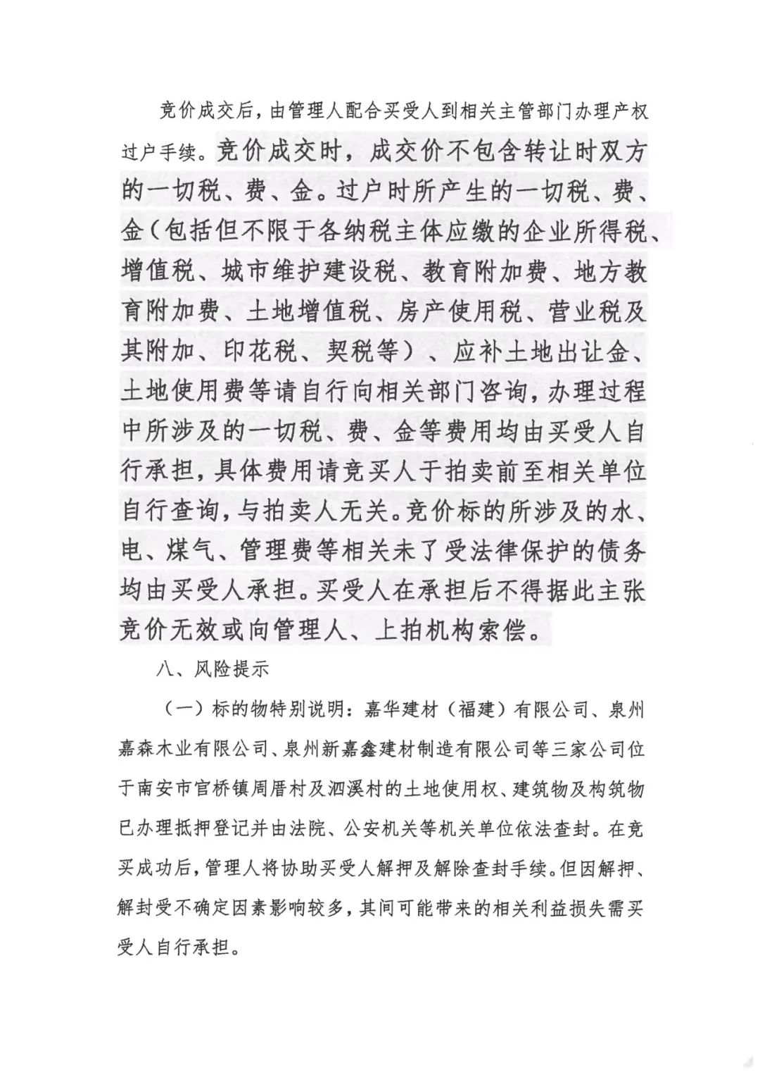 嘉华建材、嘉森木业、新嘉鑫建材等三家公司位于南安市官桥镇周厝村及泗溪村的土地使用权、房屋建筑物及构建物竞买公告