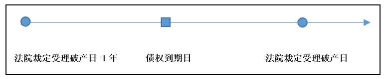 第一,债务在破产案件受理前的一年内已到期,留置权成立。这里的“到期”,系指债权届期且未获得清偿。只有在留置权担保的债权届期且没有获得清偿的前提下,债权人才可以留置其事先占有的债务人财产。在此情形中,各时间节点如下图所示:
