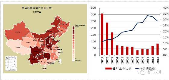 煤炭业也面临着同样的问题。煤炭上市公司中,虽比钢铁企业总体底子要厚,但“僵尸化”趋势加重。陕西煤业、云煤能源、大同煤业和中煤能源相继发布年报,2015年四家企业加起来预计净亏80亿元左右,只好纷纷变卖产业,断臂求生。目前,煤炭开采业已经全面陷入亏损,至少1/3的企业成为“僵尸”。