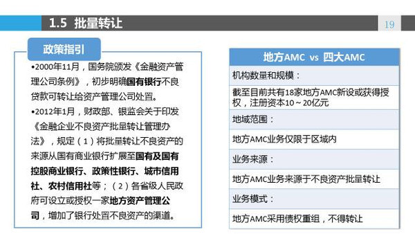 这些地方版AMC以处置城商行和部分股份制银行的不良贷款为主,通过统一收购、处置地方政府不良债权,一定程度上防止了银行被地方债务所绑架,减少对实体经济的冲击。