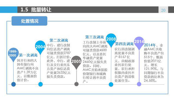 首当其冲是四大资产管理公司——东方、华融、长城、信达,因处置上世纪末四大国有银行的不良资产而创办,如今已是主力军队伍。