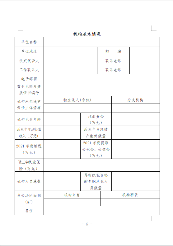 1.申报机构的基本情况,填写申报表(见附件),包括规模、资质、执业人员等;