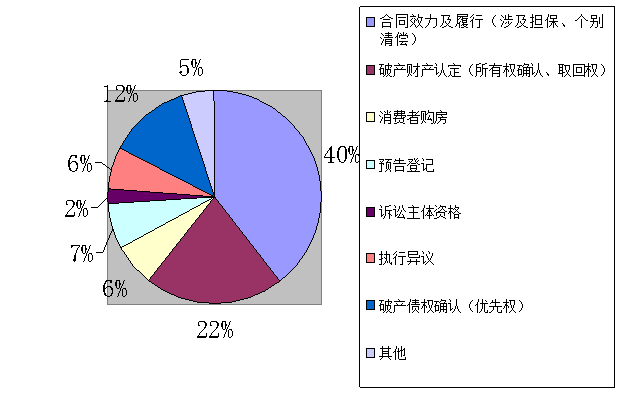 (二)法律关系繁杂。样本案例中涉及多种案由,包括普通债权确认纠纷、取回权纠纷、买卖合同纠纷、借款合同纠纷、债务转移合同纠纷、撤销个别清偿行为纠纷、保证合同纠纷、执行异议之诉等,引用法条除《中华人民共和国企业破产法》(以下简称《破产法》)及其司法解释之外,大部分衍生诉讼处理需要引用《中华人民共和国民法典》(以下简称《民法典》,2021年1月1日前为各单行法)、执行程序相关规定。常见条款包括:《最高人民法院关于建设工程价款优先受偿权问题的批复》第二条,《最高人民法院关于人民法院办理执行异议和复议案件若干问题的规定》(以下简称《执行异议若干规定》)第二十九条规定的消费者购房、第二十八条规定无过错房屋买受人的物权期待权,《中华人民共和国物权法》(以下简称《物权法》)第二十条规定的预告登记等。