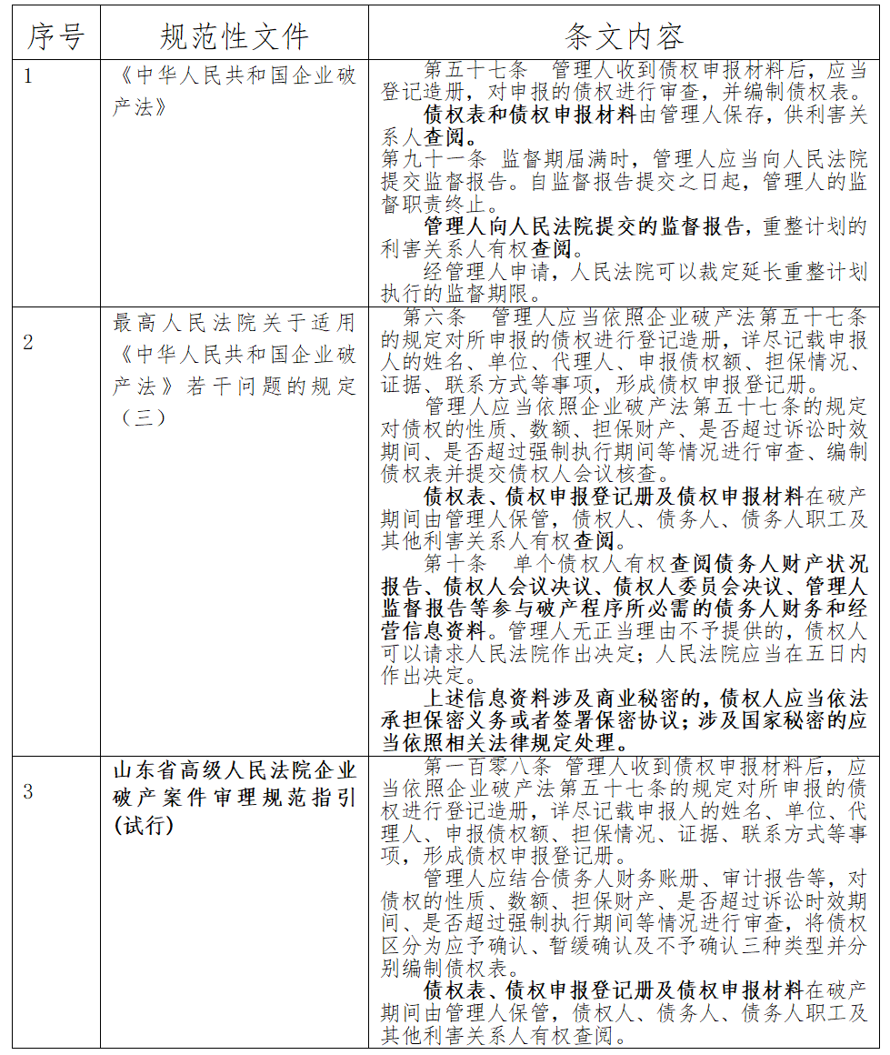 2.查阅内容应仅限于参与破产程序的债务人的财务、经营信息