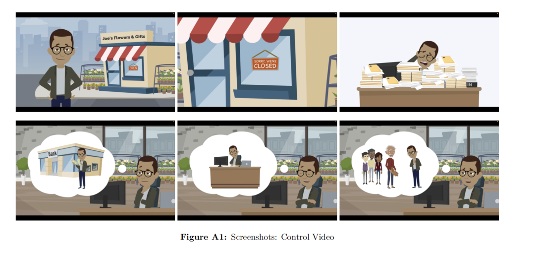 如上所述,随机对照实验中的变量为播放视频的内容。受访企业被随机分配到对照组、信息不对称组或信息不对称+污名化破产组,每组观看不同的视频。作者在制作视频时特别关注:一是视频应当能够使所有受访者的认知向同一方向单向发展;二是视频内容真实准确。