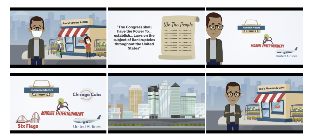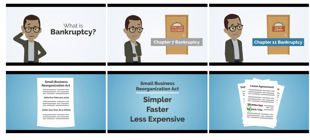 第二个视频内容深入到破产制度中,介绍了美国破产法第七章和第十一章的基本区别以及《小规模经营重整法》的基本内容。视频中并未涉及任何为破产正名的内容。视频截图如下: