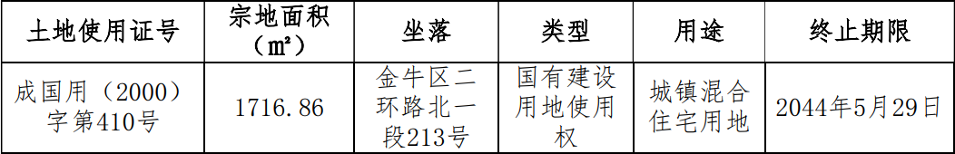 隍龙大厦位于成都市金牛区花圃路1号,诚兴公司持有其中共计9套商铺,建筑面积522.58㎡,均已设立抵押。