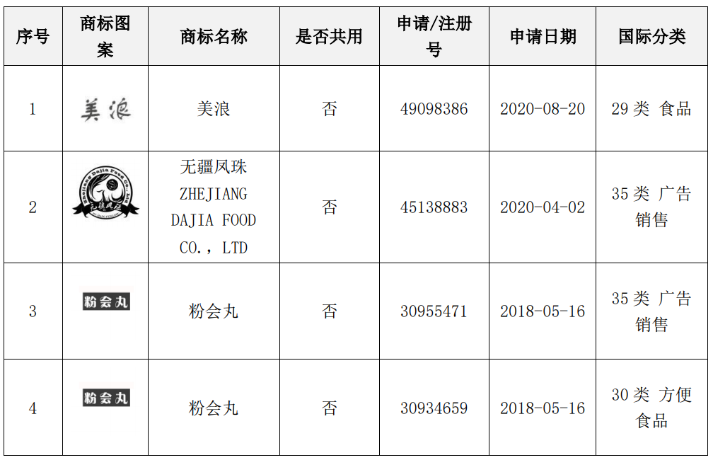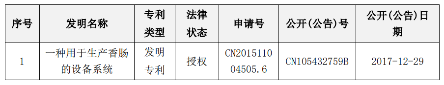 大家食品于2018年2月7日在股转系统正式挂牌上市,成功登陆“新三板”并进入资本市场,目前公司证券简称:ST大家,证券代码:872584。大家食品名下拥有商标、专利等多项资产资质。经调查,截至本报告出具日,大家食品名下拥有发明专利1项,注册商标14项。