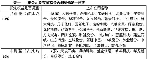 表二:股东权益调整方式一览表