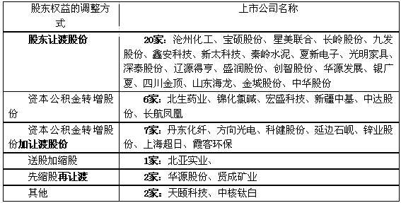 在我国上市公司重整中调整股东权益面临诸多操作难题,亟待解决。下面我们先对股东权益调整方式进行数据统计,分析实务中存在的现实问题。