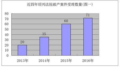 图一:近四年绍兴两级法院破产案件受理数量