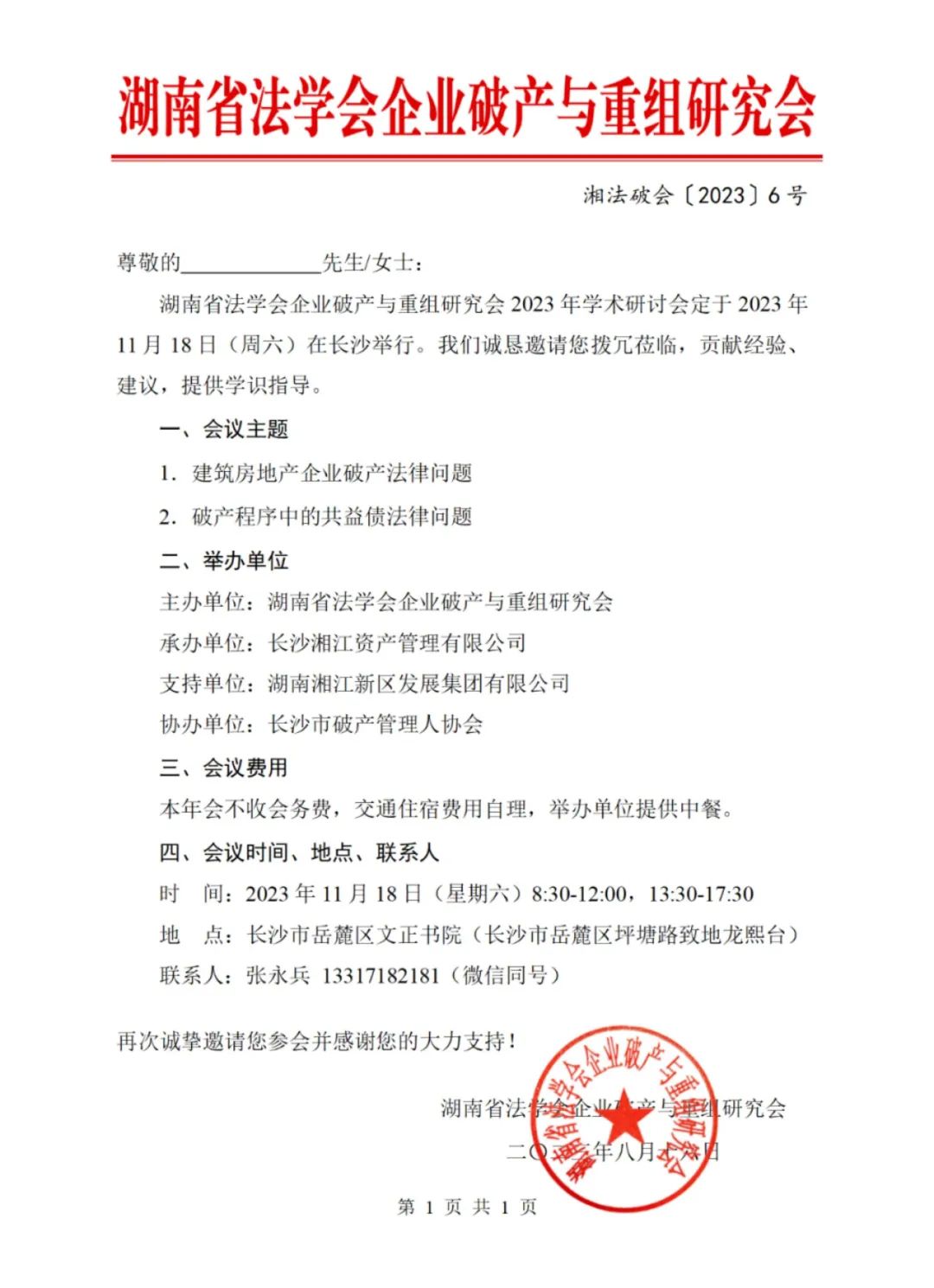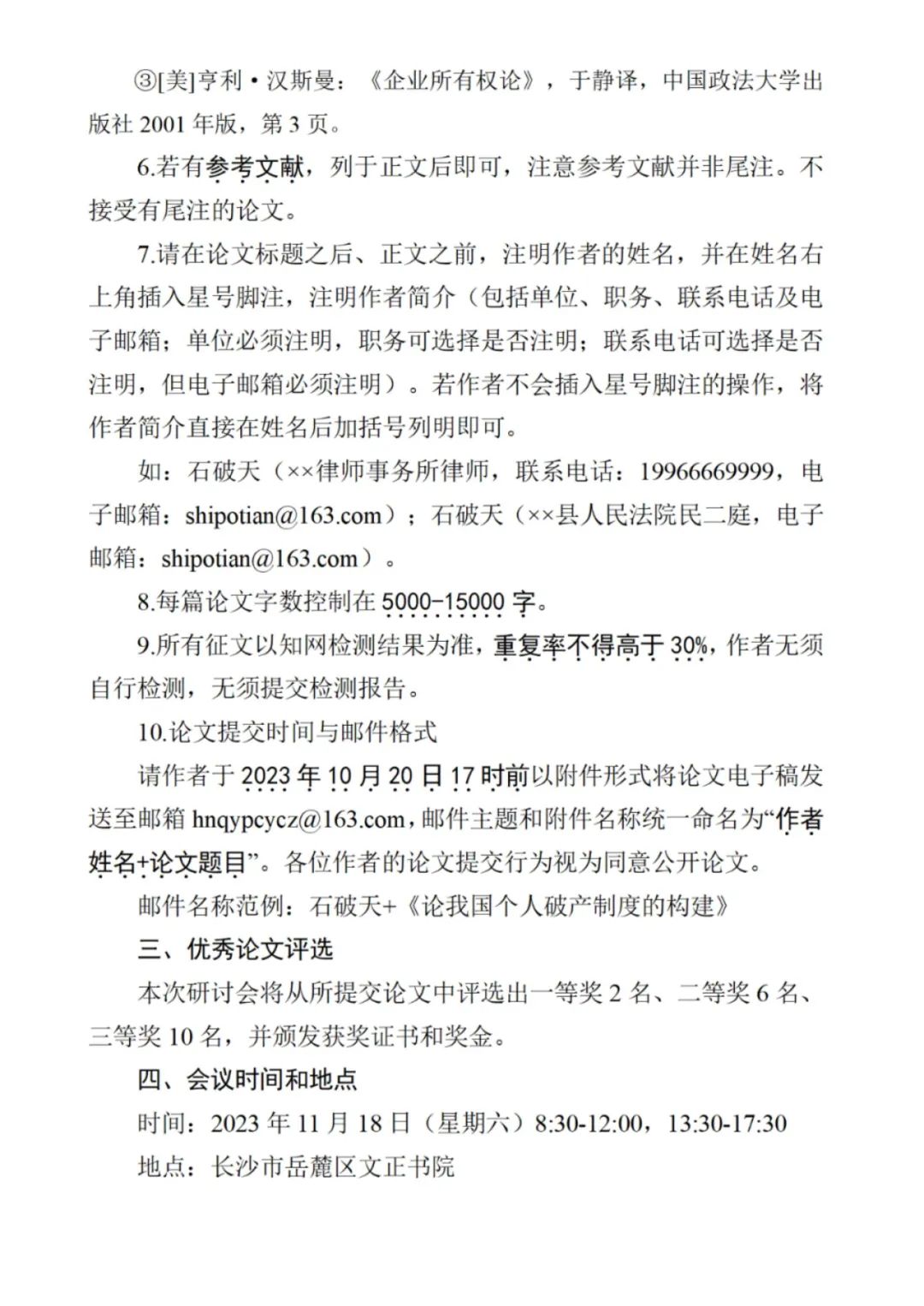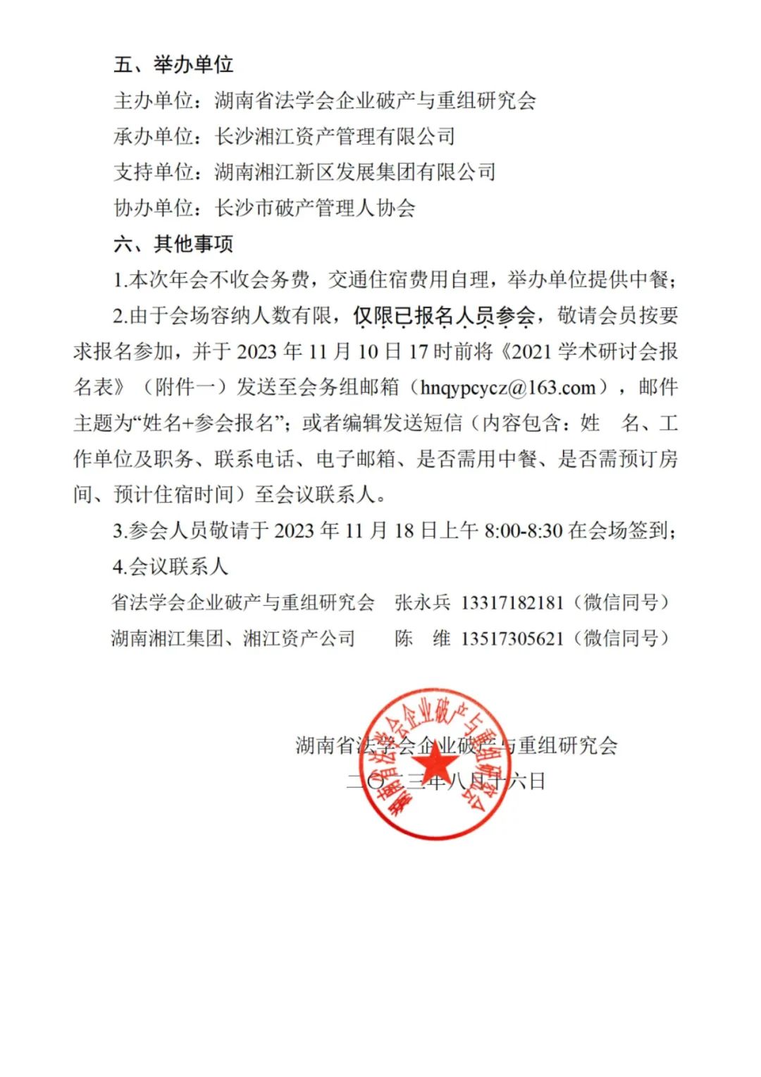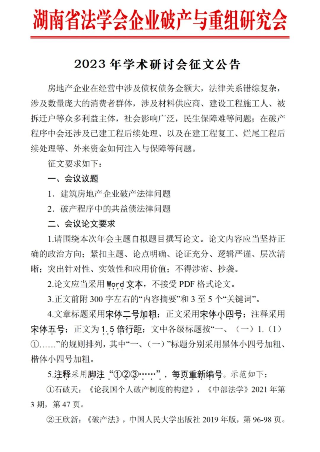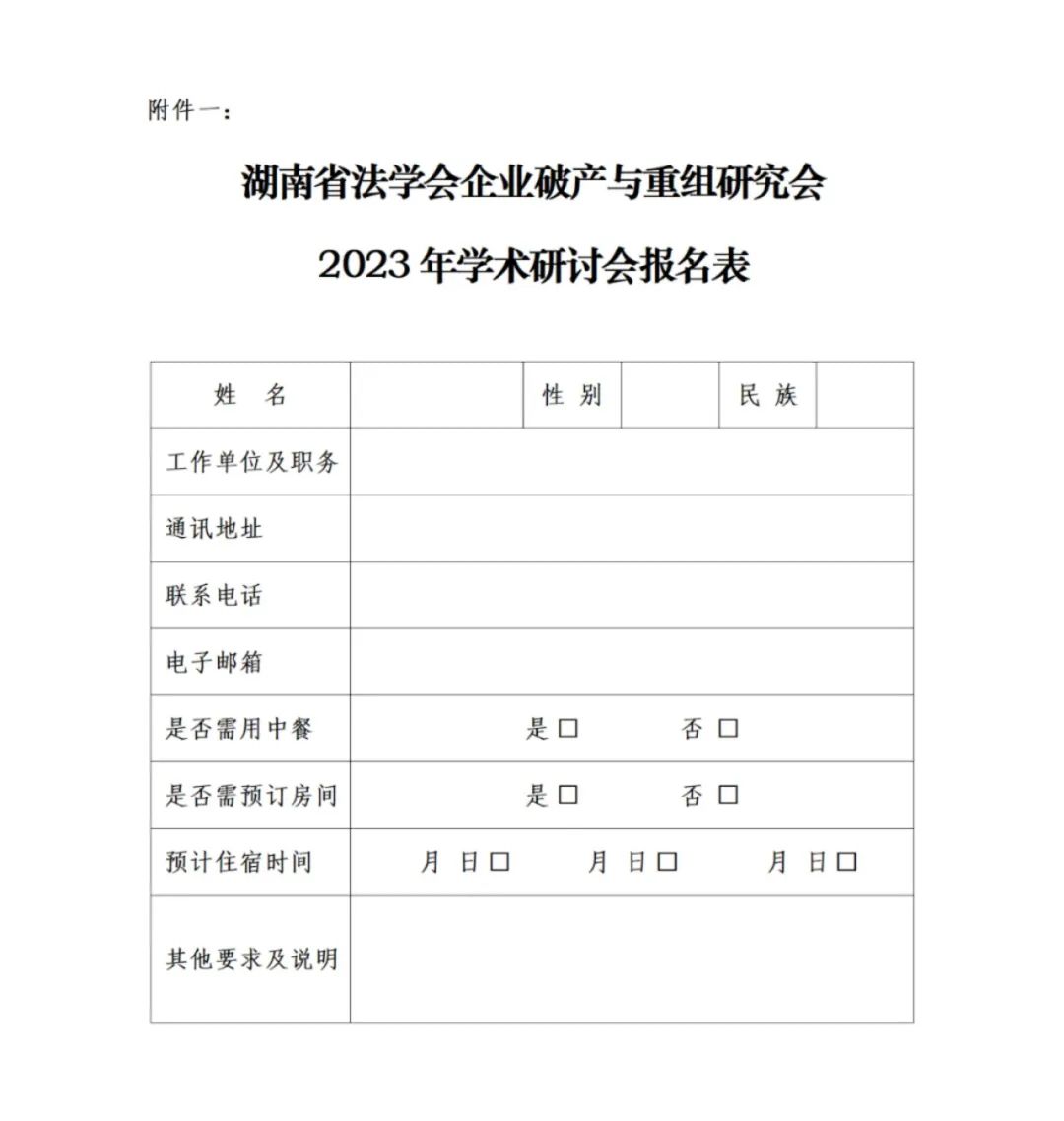 湖南省法学会企业破产与重组研究会2023年学术研讨会征文公告