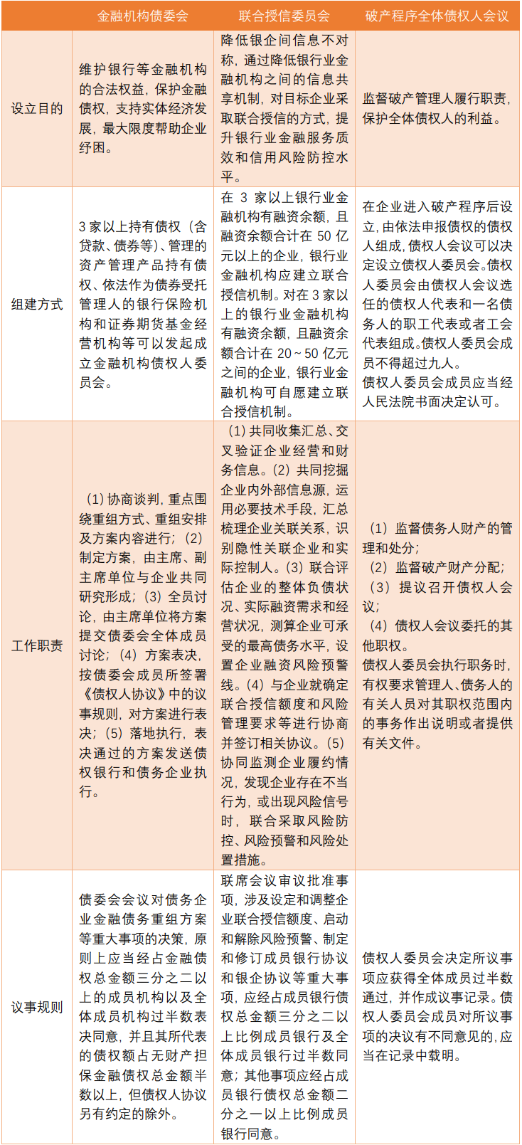 (三)金融债委会与联合授信委员会、破产程序中全体债权人会议的区别和衔接