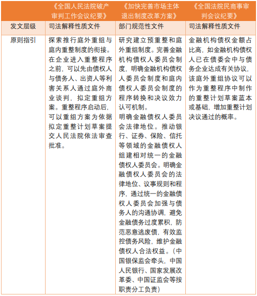 中央经济工作会议强调推进供给侧结构性改革,积极稳妥处置“僵尸企业”,司法部门要依法为实施市场化破产程序创造条件。为化解产能过剩、清理僵尸企业,法院需要建立完善的破产审判工作机制,努力为企业市场化破产创造良好的司法环境。为解决企业破产中存在的问题和困难,最高人民法院在广东省深圳市召开了全国法院破产审判工作会议,对法院破产审判涉及的主要问题展开讨论,其中明确探索推行庭外重组与庭内重整制度的衔接,在企业进入重整程序之前,可以先由债权人与债务人、出资人等利害关系人通过庭外商业谈判,拟定重组方案,肯定了债权人和债务人庭外谈判的模式,也为金融债委会进一步发展奠定基础。