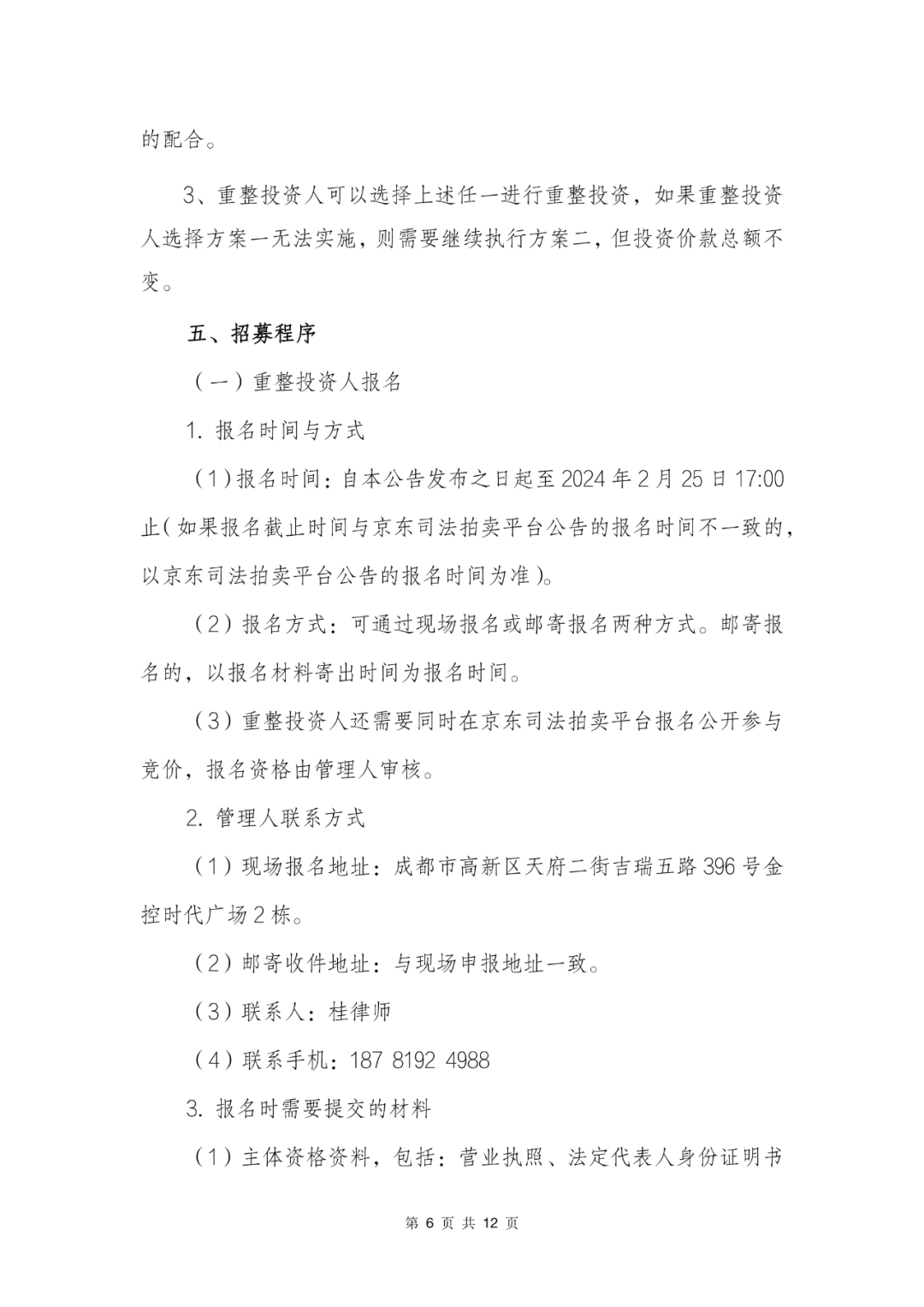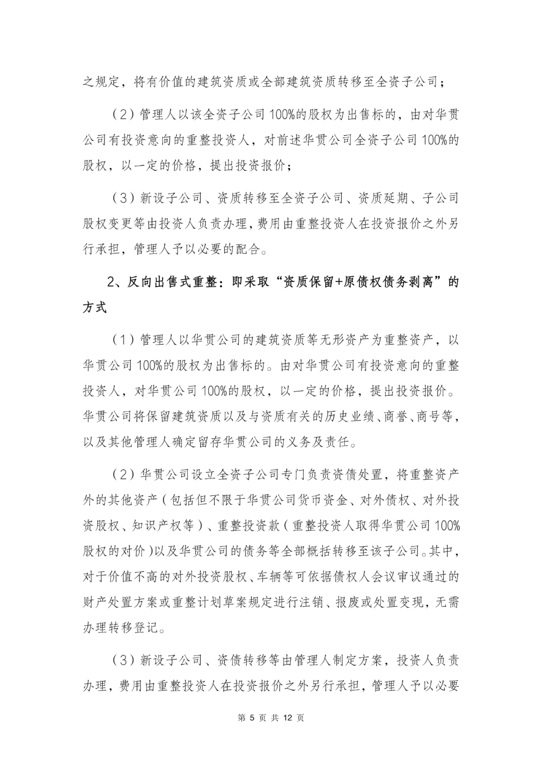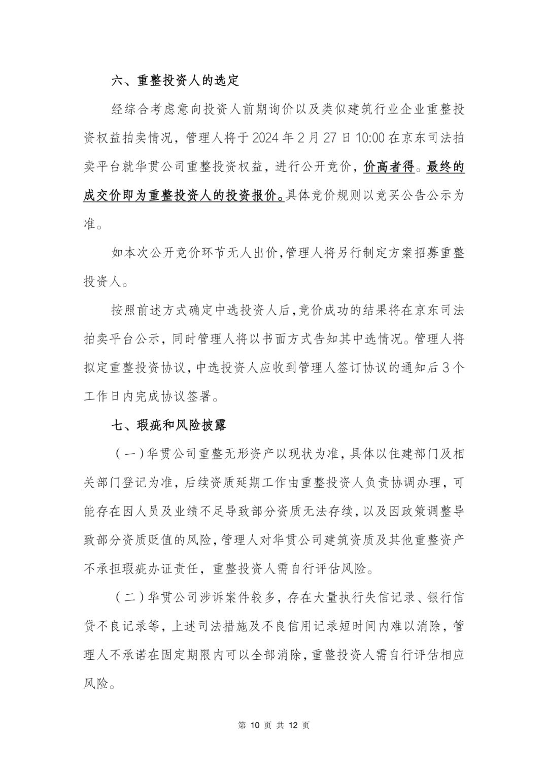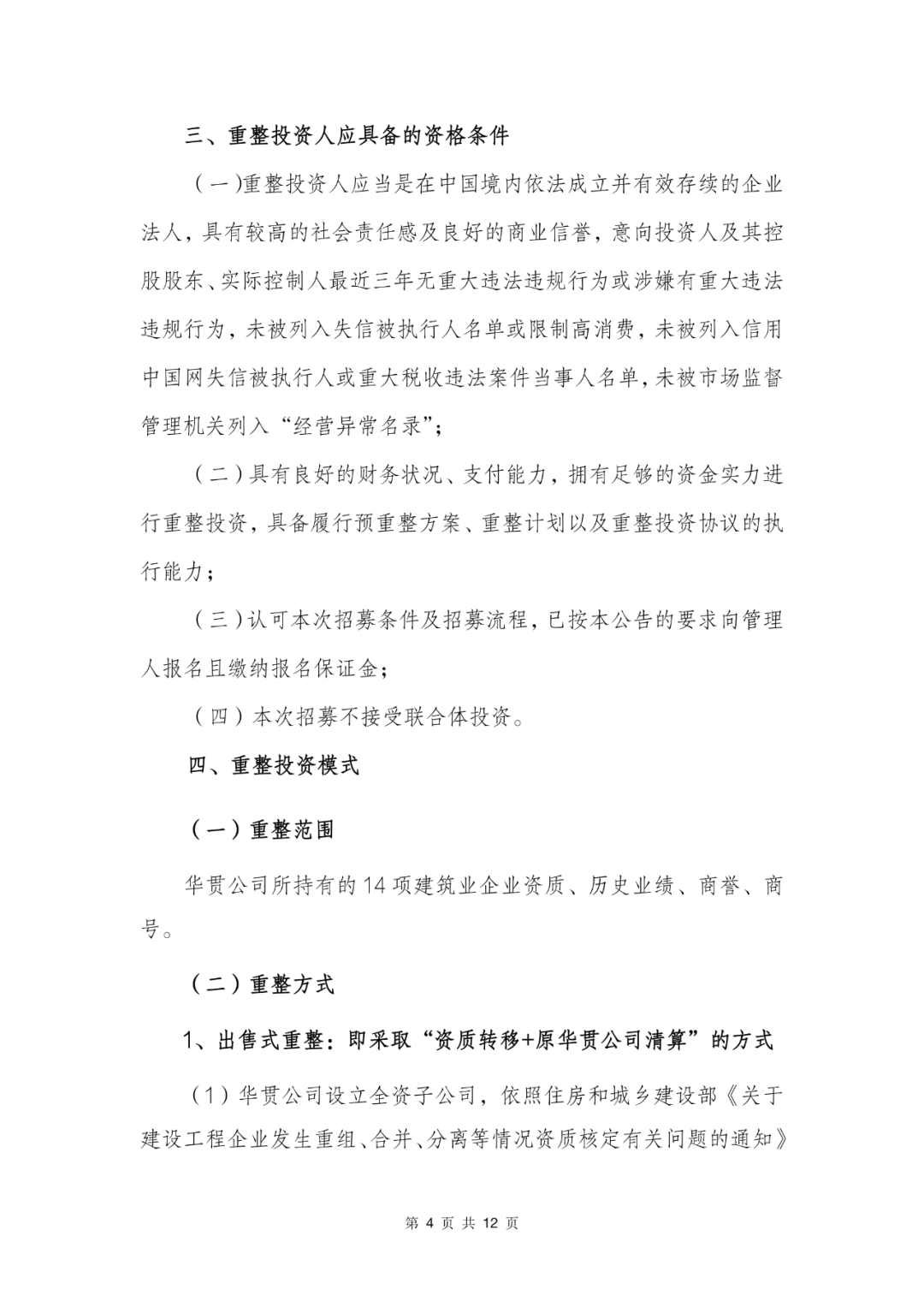 华贯建设有限公司招募重整投资人的公告