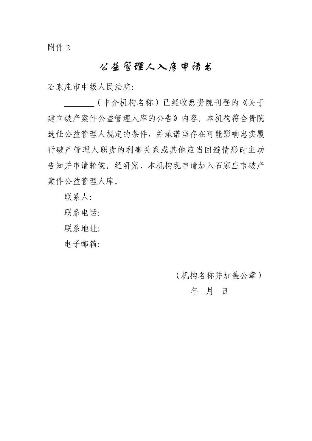 石家庄中院关于建立破产案件公益管理人库的公告