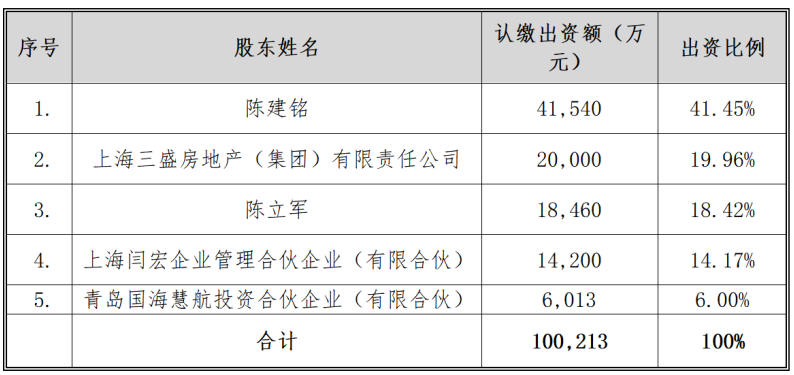 截至本公告发布之日,三盛宏业工商登记资料显示的股权结构及认缴出资情况如下:
