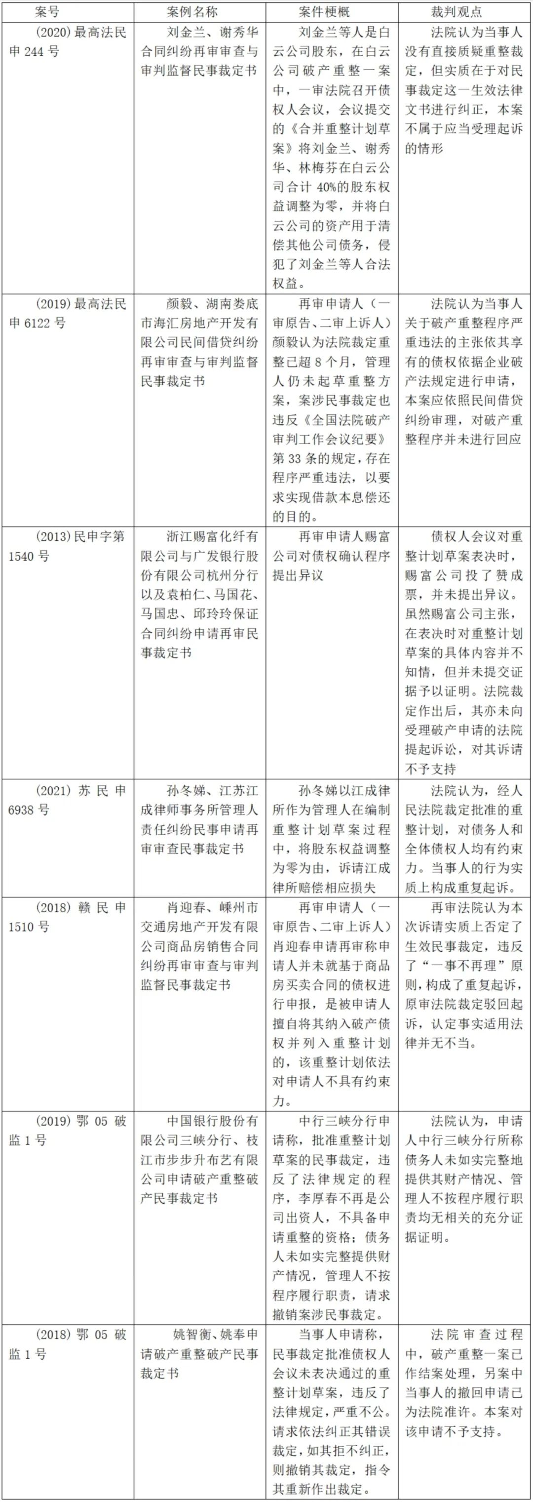 (四)可查询案件中的重整计划、重整裁定异议人各种未能“救济”成立情形归纳