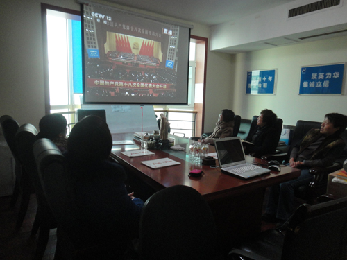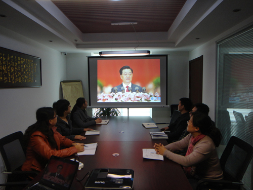 华信公司全体员工收看十八大实况录像