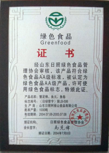 阿掖山集团生产的模拟蟹肉、鱼丸、鱼卷等产品曾荣获国际食品博览会名牌产品和中国食品博览会金奖、“山东省著名商标”、山东省冷冻产品十大名牌等荣誉;模拟蟹肉系列产品通过了山东伊斯兰教协会的清真(HALAL)认证。拥有使用权的阿掖山品牌商标35个。是海关认定的AA类进出口企业和享受便捷通关措施的企业,是“山东省优质鱼糜制品生产基地”。先后通过了美国HACCP认证、欧盟注册、俄罗斯SGS认证、英国BRC认证、ISO9000国际质量体系认证、ISO14000国际环境质量体系认证、ISO18000国际职业健康体系认证。