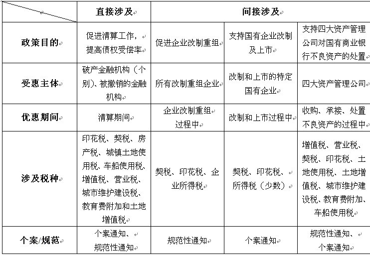 我国涉及企业破产重整税收优惠政策分类表