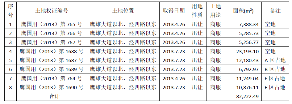 2、铜锣湾公司所有的国有出让商服用地8宗,详见下表: