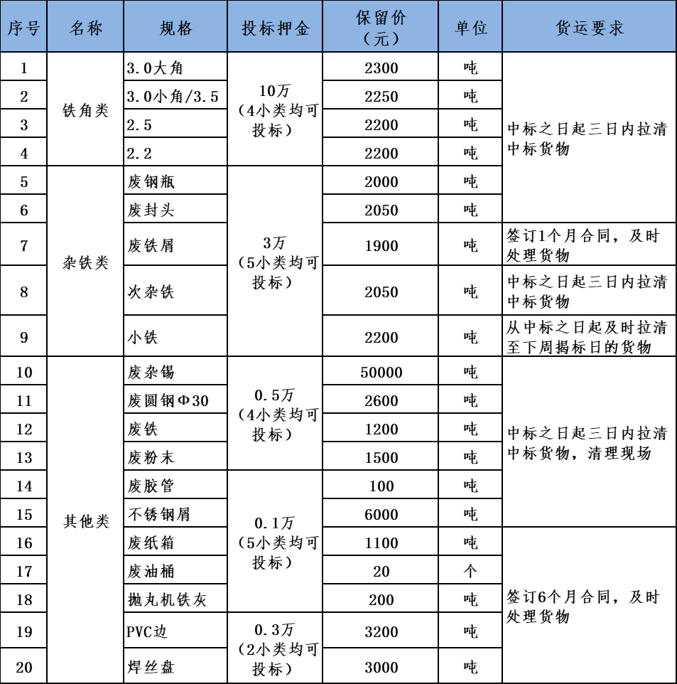 1.中标价为不含税价,中标人按照实际过磅数量一车一结算,投标押金转为履约保证金留待最终结算。
