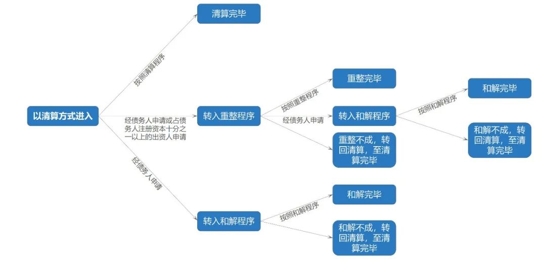 破产清算、重整、和解程序的转换