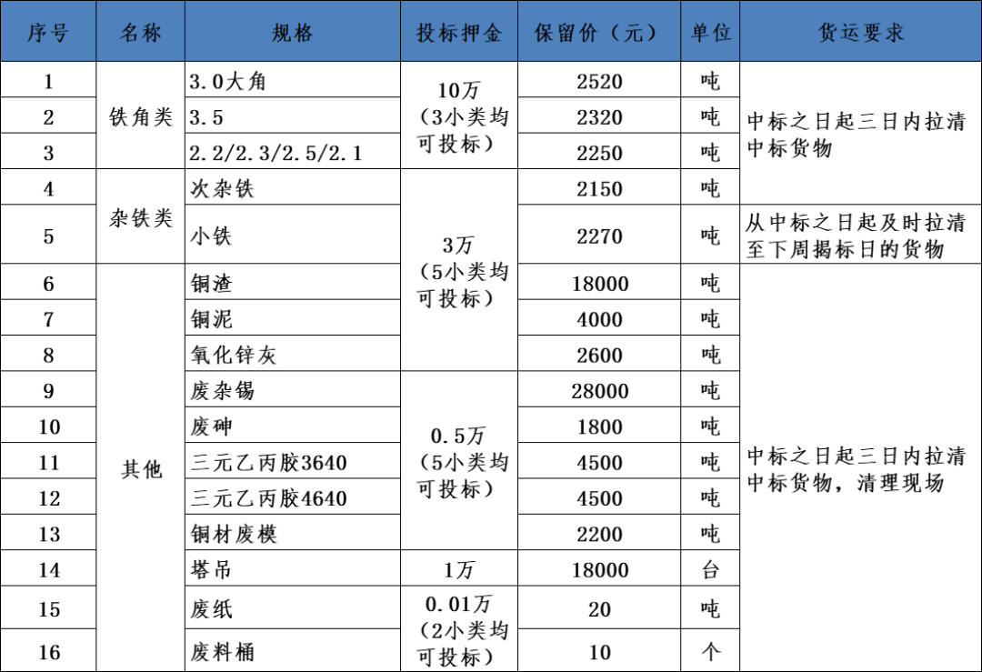 1.中标价为不含税价,中标人按照实际过磅数量一车一结算,投标押金转为履约保证金留待最终结算。