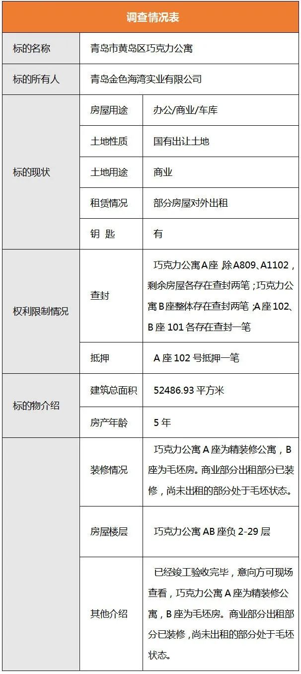 青岛市黄岛区人民法院审理的青岛金色海湾实业有限公司强制清算案,主要资产位于黄岛区,优质的公寓房产。