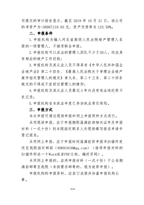 关于河北海贺胜利印刷机械集团有限公司申请破产重整案件公开选任管理人的公告