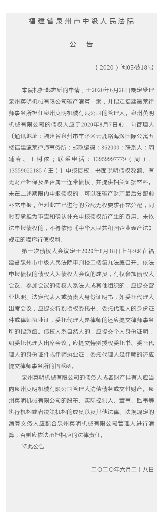 作者:泉州市破产管理人协会 时间:2020-07-06 阅读次数:1280 次 来自: