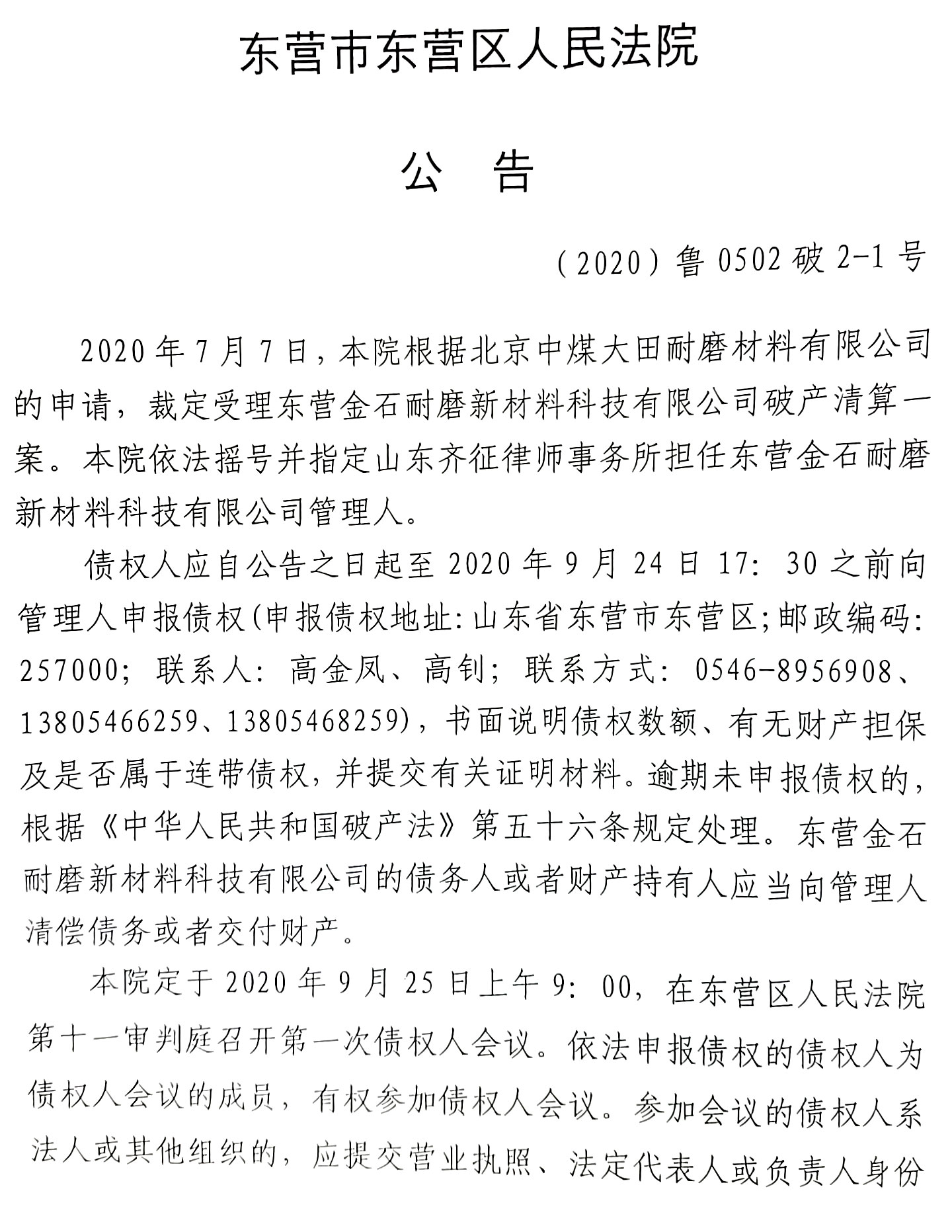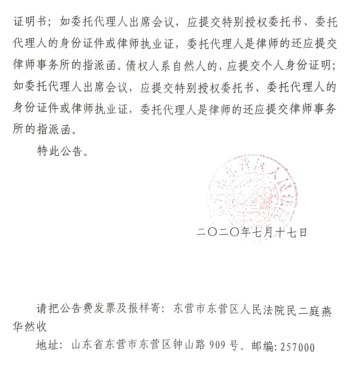 东营市东营区人民法院公告
