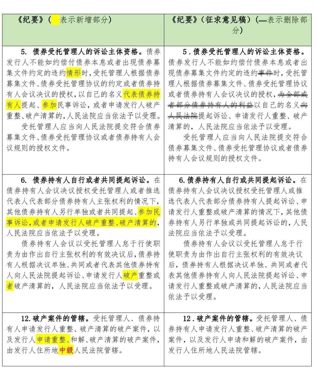 结合实践经验研读条文过程中,会发现一些问题:比如债券持有人会议做出了共同授权委托债券管理人起诉或者申请破产的决议,在此过程中,如果债券流通,由新的机构持有债券,那么已经做出的这个决议,是否对新的持有人有效呢?如果新的持有人不同意原来决议的授权安排,究竟如何处理?如果在此过程中各方达成了和解或者减免方案,是否需要通过新的决议固定?是否要对受托管理人的权限进行新的授权?是否需要开新的会议?等等诸多问题,《纪要》尚不明确,未来这些有待于司法实践和最高院做出更详尽的司法解释。
