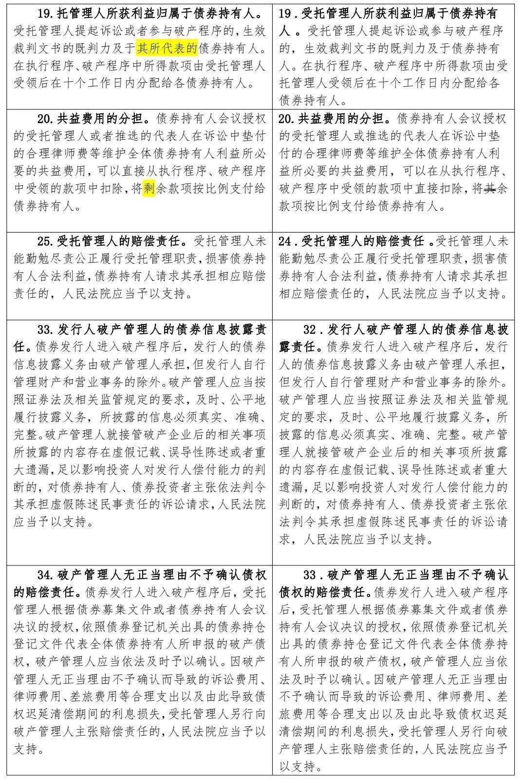 《纪要》正式版本相较于征求意见稿,强调了受托管理人代表部分债券持有人行使担保物权下的利益归属按照比例分配,除此之外,仅是字句调整。这里其实还有一个隐蔽的问题,即关于受托管理人在处理有关债券持有人事务时产生的第三方费用,受托管理人是否有垫付义务?此义务是否属于受托管理人勤勉尽责的范围?如果受托管理人因担心将来可能收不回垫付资金而拒绝垫付,是否需要承担责任?法律对此并无明确规定。