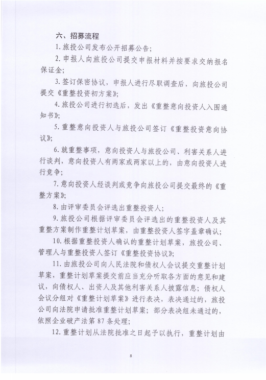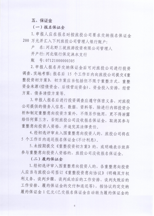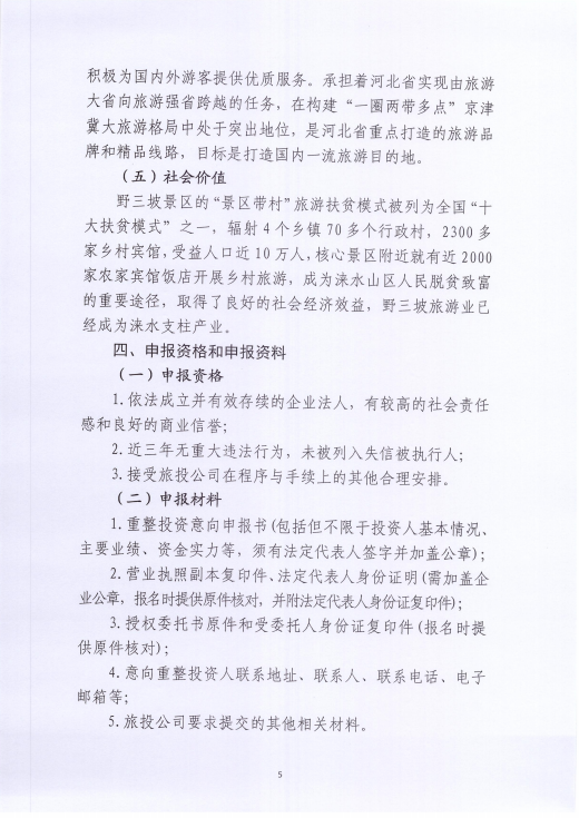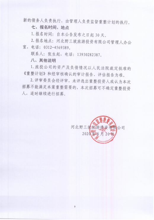 河北野三坡旅游投资有限公司 关于招募重整投资人的公告