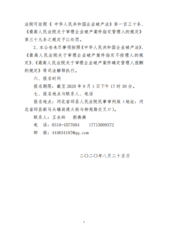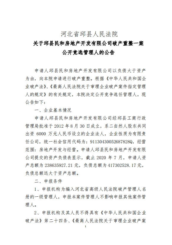 关于邱县民和房地产开发有限公司破产重整一案公开竞选管理人的公告